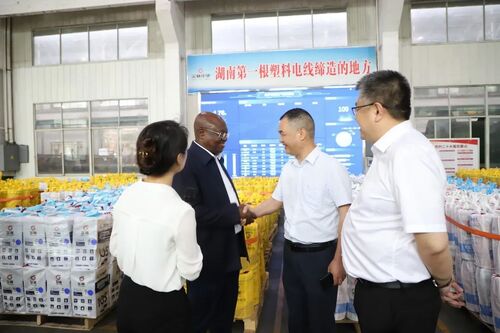6月6日,剛果(金)駐華大使巴盧穆埃內(nèi)一行蒞臨金杯電工考察工業(yè)項(xiàng)目。衡陽(yáng)市副市長(zhǎng)朱春光參加。金杯電纜總經(jīng)理夏君山、副總經(jīng)理王興國(guó)等領(lǐng)導(dǎo)陪同考察。 走進(jìn)智能電線生產(chǎn)車間,只見(jiàn)內(nèi)機(jī)器轟鳴,火力全開(kāi)。巴盧穆埃內(nèi)詳細(xì)了解生產(chǎn)、出口情況,向金杯電纜發(fā)出熱情邀請(qǐng):“...